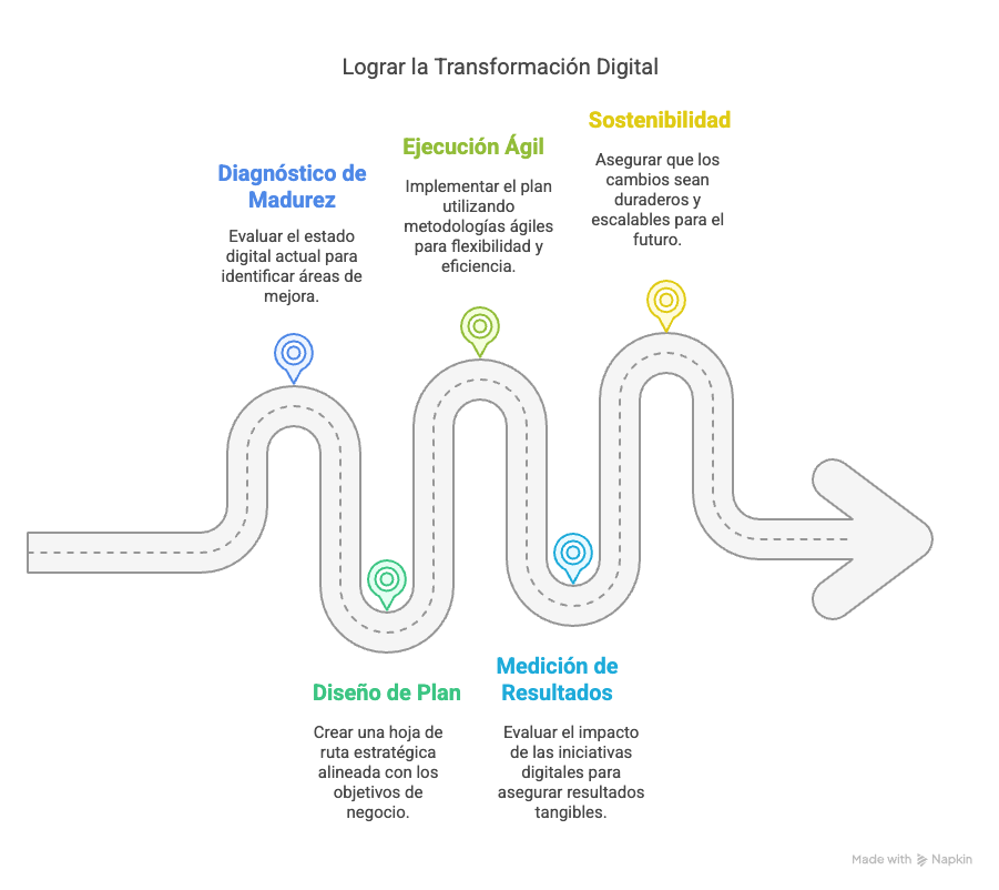La transformación digital no se trata solo de tecnología: también de personas. Fomentar una cultura digital en tu empresa significa capacitar a tus equipos, alinear liderazgos y promover una mentalidad de innovación continua. - Mide resultados y ajusta